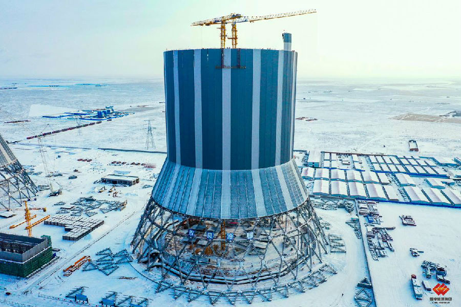 2020年11月21日,內(nei)蒙古鄂爾多斯市前旗(qi)地(di)區(qu)的溫(wen)度已降至(zhi)零下20攝氏度。相比冬季因低溫(wen)結塊無(wu)法施工的混凝(ning)土型(xing)塔,1號(hao)冷卻塔憑借其鋼質優勢(shi)可以繼續(xu)施工。