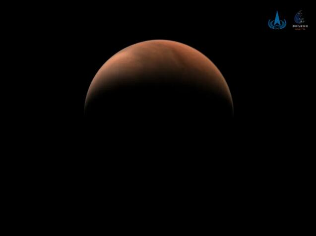 天問一號探測(ce)器(qi)飛行至(zhi)距離(li)火(huo)星(xing)1.1萬(wan)千米處(chu),利用(yong)中分辨率(lv)相機拍(pai)攝了火(huo)星(xing)全景。此時,由于(yu)(yu)探測(ce)器(qi)處(chu)于(yu)(yu)火(huo)星(xing)側(ce)后方上空(以面向太陽為前方),得(de)到兩幅“側(ce)身(shen)”影像。