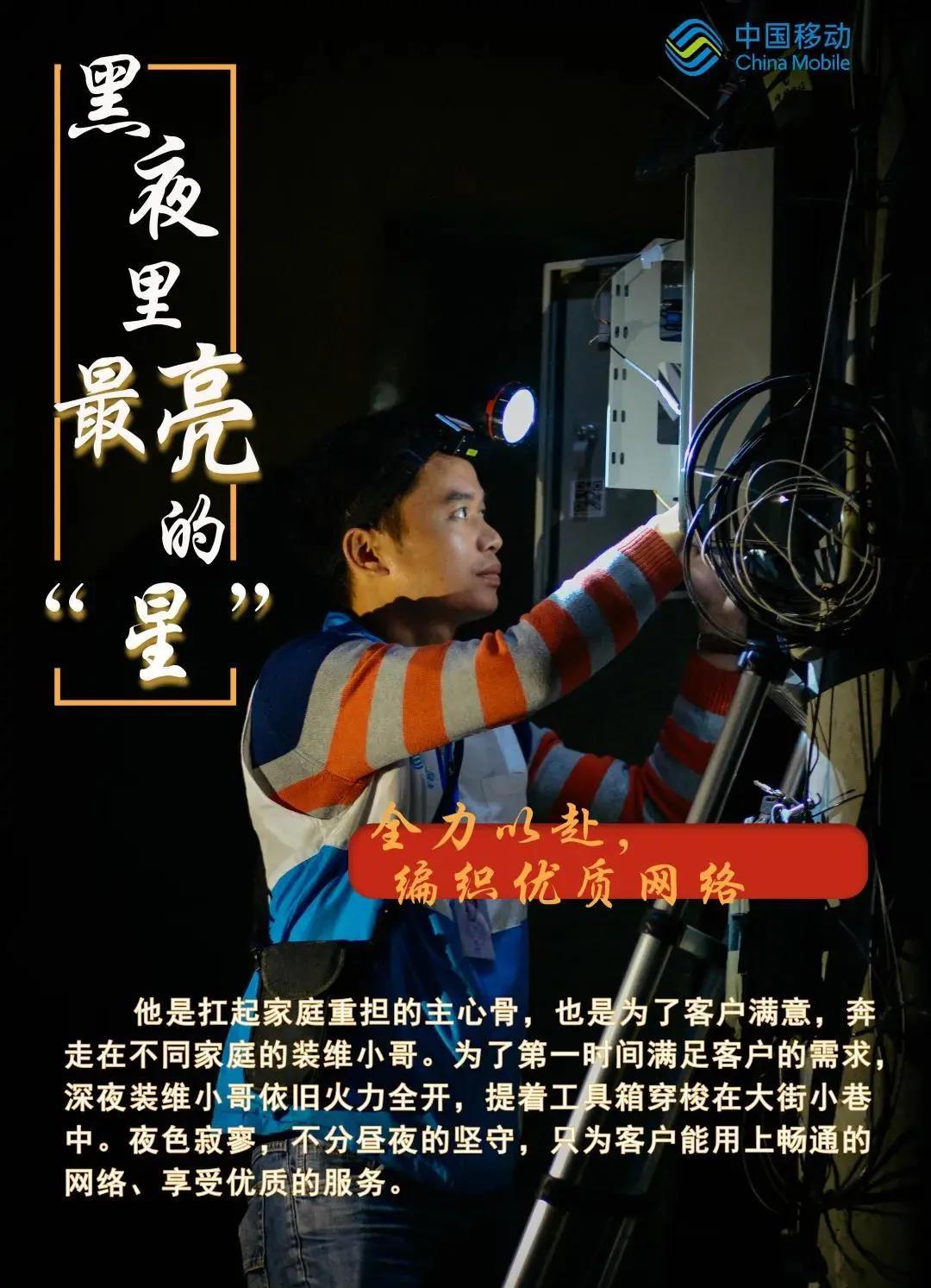 星(xing)光不(bu)負趕路(lu)人,歲(sui)月不(bu)負有心(xin)人,無數個黑夜里(li)的(de)努力,凝聚著(zhu)移動人對通信事業的(de)熱愛與責任,肩負通信使命,奮斗在路(lu)上!