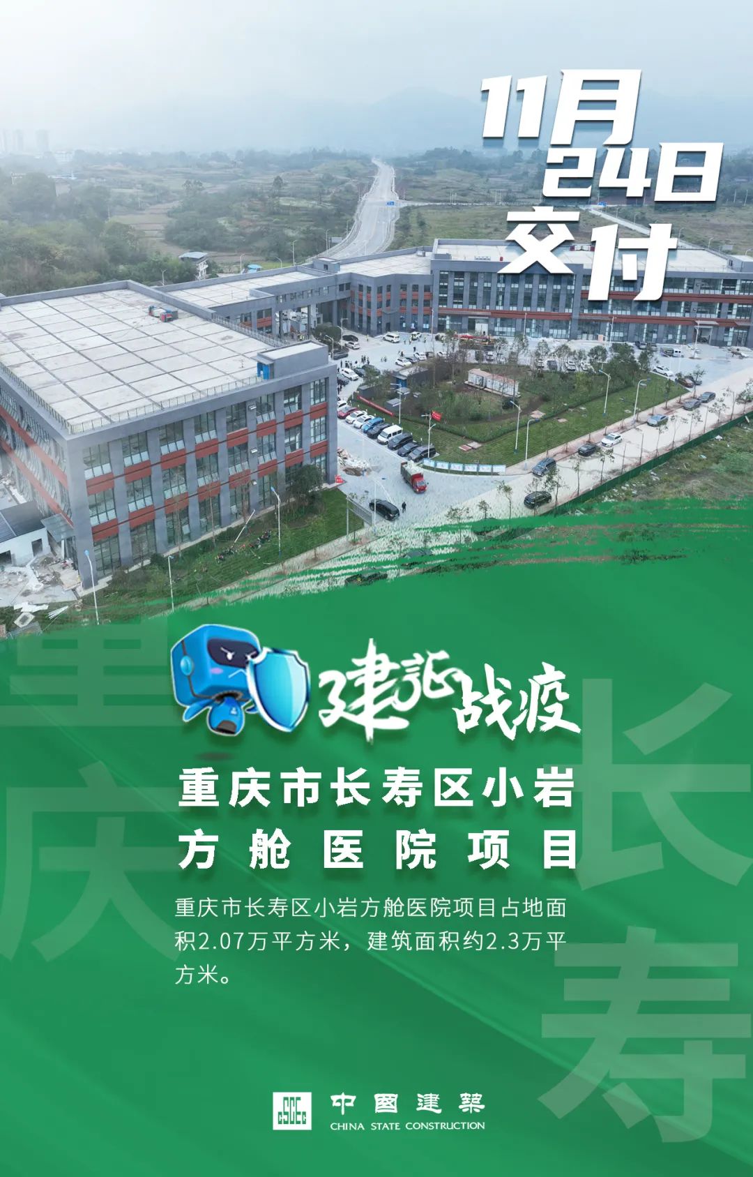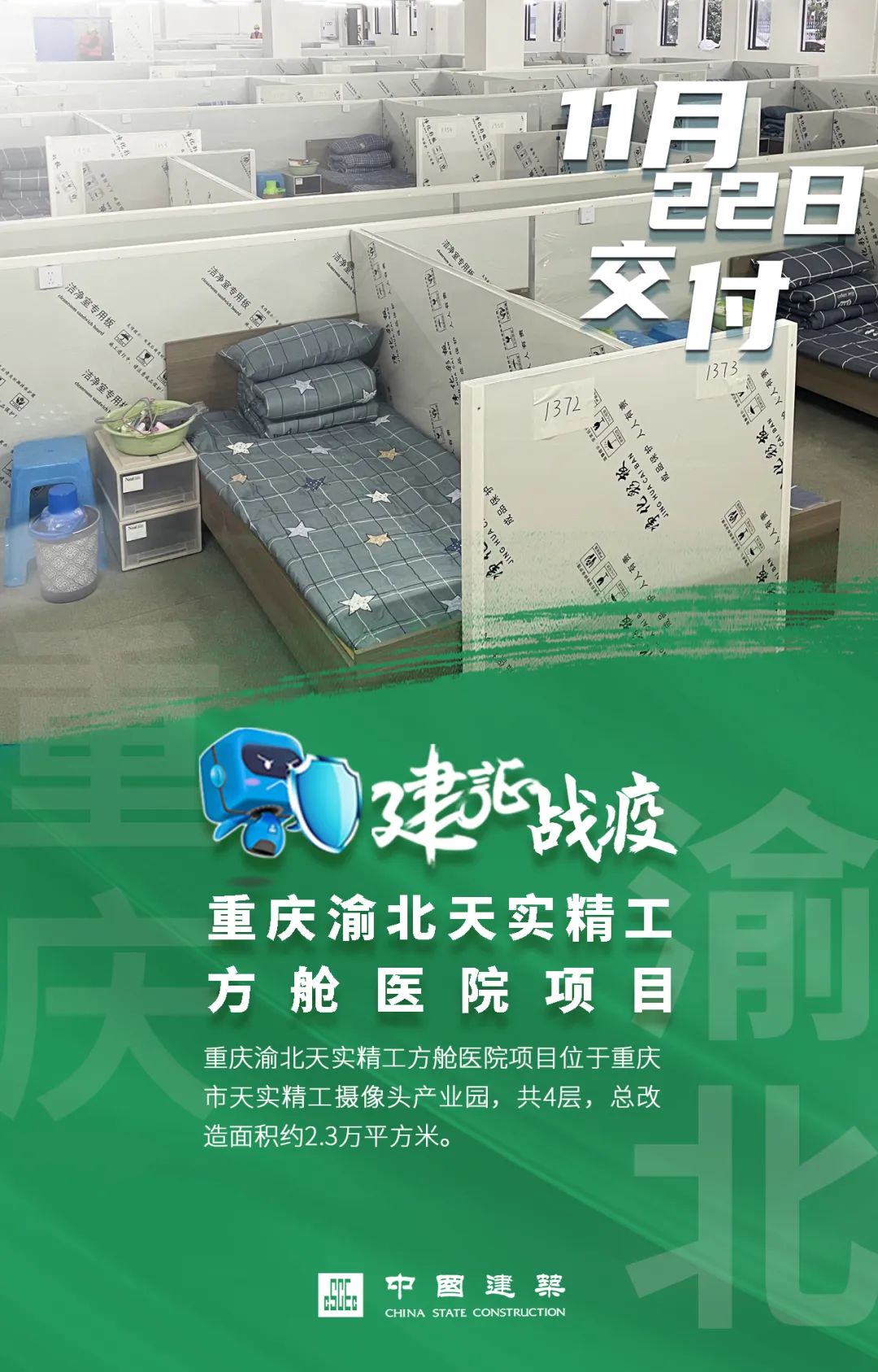 11月24日(ri),中建(jian)科技(ji)承建(jian)的重慶市長壽區(qu)小巖方(fang)艙(cang)醫(yi)院項(xiang)目完工。項(xiang)目占地面(mian)積約(yue)2.07萬平(ping)(ping)方(fang)米,總(zong)建(jian)筑(zhu)面(mian)積約(yue)2.3萬平(ping)(ping)方(fang)米,由標準的工業(ye)廠房改建(jian)而(er)成,可提供1506張床位。