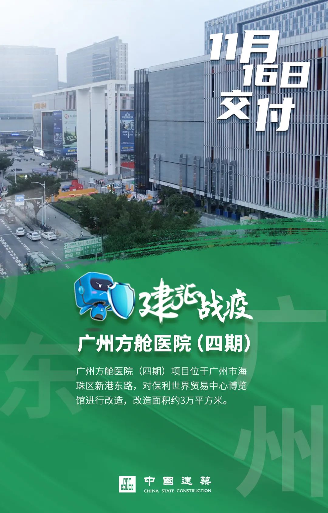 11月16日,中(zhong)建(jian)五(wu)局(ju)參建(jian)的廣州方艙(cang)醫院(yuan)(四(si)期)順利完成交付(fu)。項目位于(yu)廣州市海珠區新港東路,對保(bao)利世(shi)界(jie)貿易中(zhong)心博覽(lan)館進行改造,改造面積約3萬(wan)平方米,可提供約5000張(zhang)床(chuang)位。