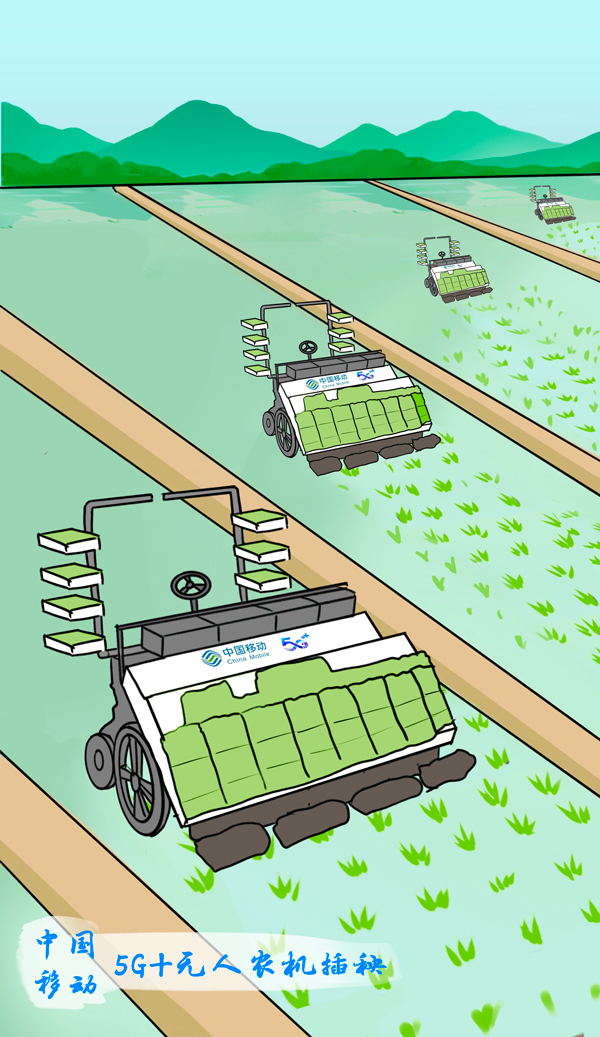 “5G+無(wu)人農機(ji)”插(cha)秧(yang),變田間勞作為后臺遠程操控,實現(xian)插(cha)秧(yang)無(wu)人化。
