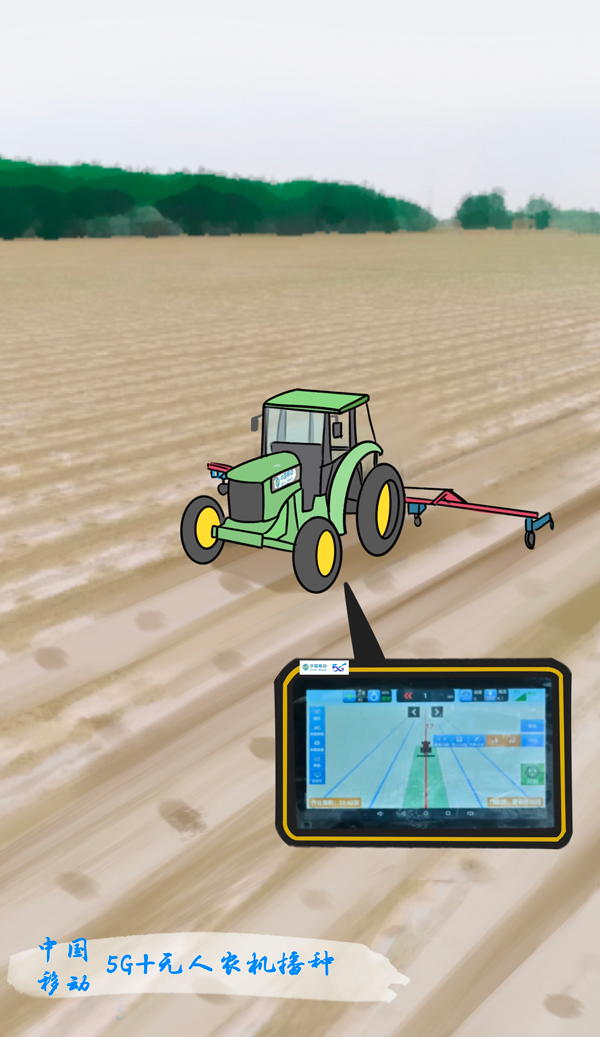 “5G+無(wu)人(ren)農機”播種(zhong),依托(tuo)“5G+北(bei)斗高(gao)精度定位”和監測系統實(shi)現(xian)農機播種(zhong)自動化。