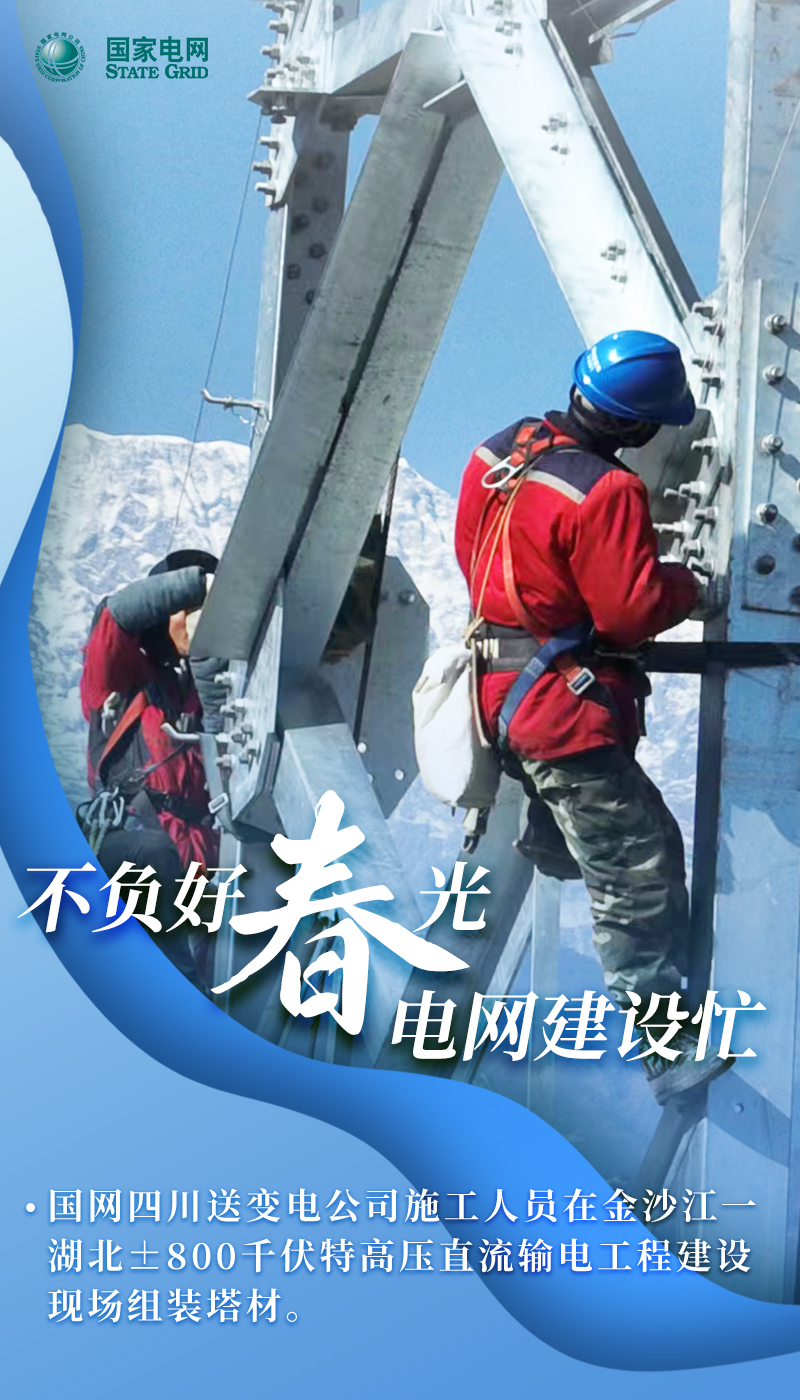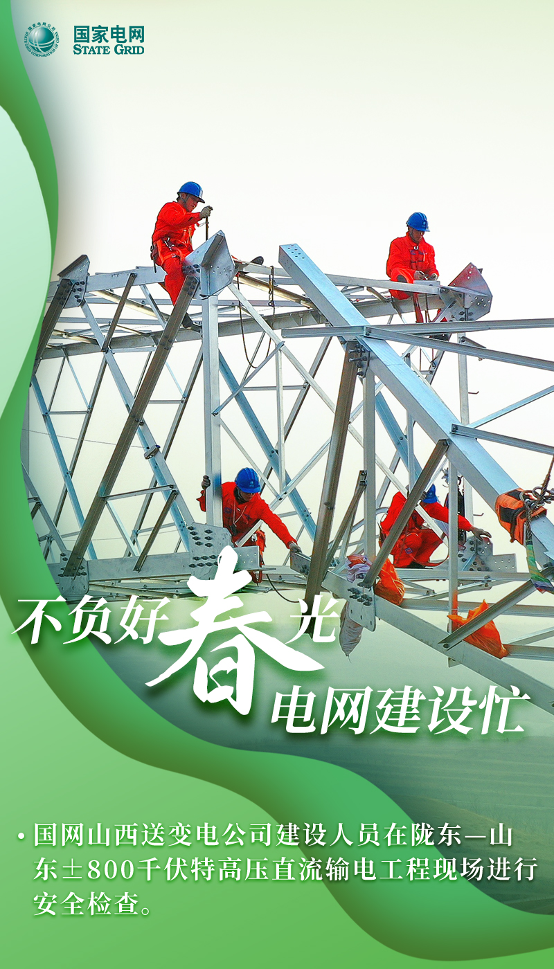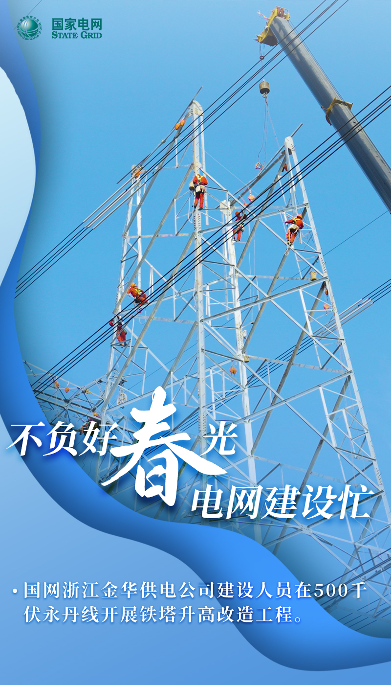 又是一年春好(hao)時。國家電網有限公(gong)司堅決(jue)扛(kang)牢電力(li)保供(gong)首要(yao)責任(ren),組織(zhi)各單位抓住當前工程建設好(hao)時機,細化(hua)安全(quan)、人員、物(wu)資、裝備等各項措施,全(quan)力(li)推動(dong)電網重大項目建設,保障電網安全(quan)穩定運(yun)行和電力(li)可(ke)靠供(gong)應(ying),服務經濟社會(hui)高質量發展。