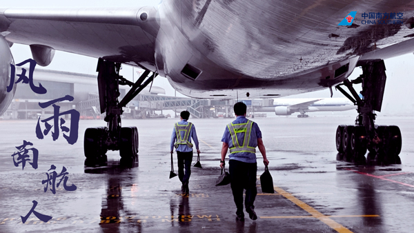 西安(an)強(qiang)降(jiang)雨,南航(hang)集團機務人(ren)員目送出港航(hang)班(ban),確保航(hang)班(ban)安(an)全起飛。