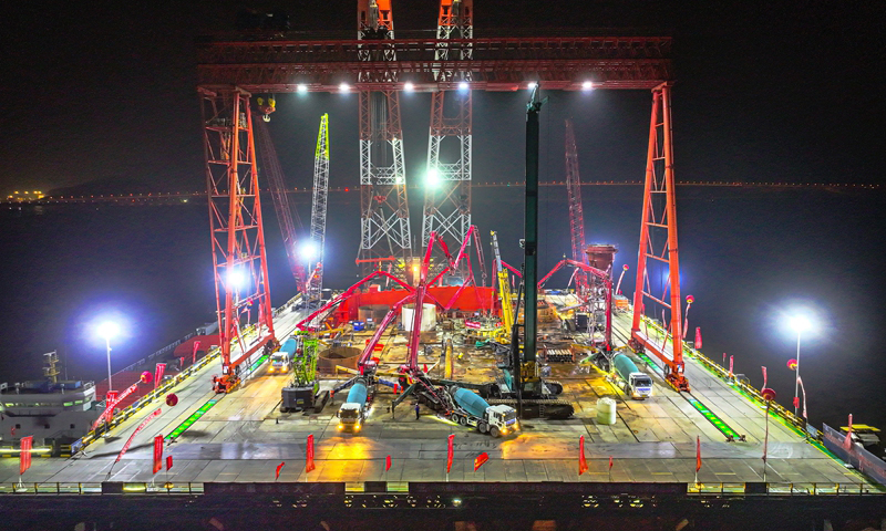 甬舟铁\Q挑灯夜战浇{钻孔桩