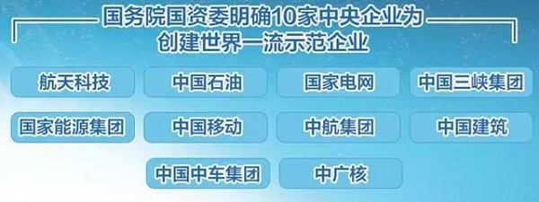比如,中央企業的(de)兼并重組、信息公開等(deng)試點已全面完成。航天(tian)科技、中建(jian)集團等(deng)10家中央企業入選(xuan)創建(jian)世(shi)界一流(liu)示(shi)范企業試點。