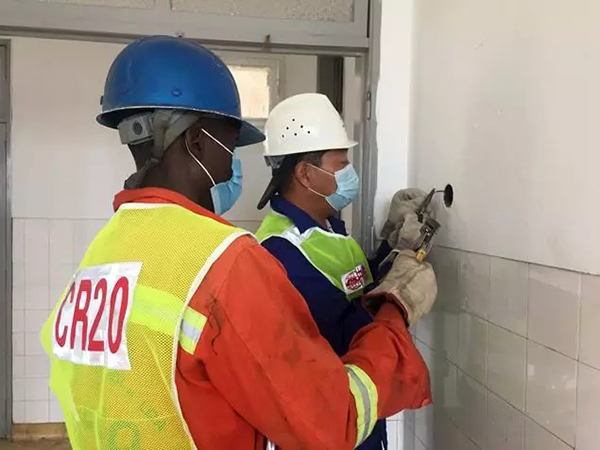 接到政(zheng)府(fu)支援請求后,中鐵二十局集團安哥拉國際(ji)公司從周邊項目(mu)(mu)抽調(diao)2名(ming)電工(gong)及12名(ming)當地員(yuan)(yuan)工(gong)立即援馳(chi)。為盡快完成醫院電路改(gai)造維修任(ren)(ren)務(wu),援建員(yuan)(yuan)工(gong)每天早上(shang)6點多出門、晚上(shang)7點多下班,午餐由項目(mu)(mu)部安排(pai)專(zhuan)人(ren)送至施工(gong)現場,最多只(zhi)預留半小(xiao)時的(de)(de)吃飯時間(jian)。“時間(jian)很緊張,我(wo)們早一分鐘完成任(ren)(ren)務(wu),安方人(ren)民的(de)(de)安全(quan)就能提(ti)前有一份(fen)保障。”參與建設任(ren)(ren)務(wu)的(de)(de)中方員(yuan)(yuan)工(gong)步延輝說道。