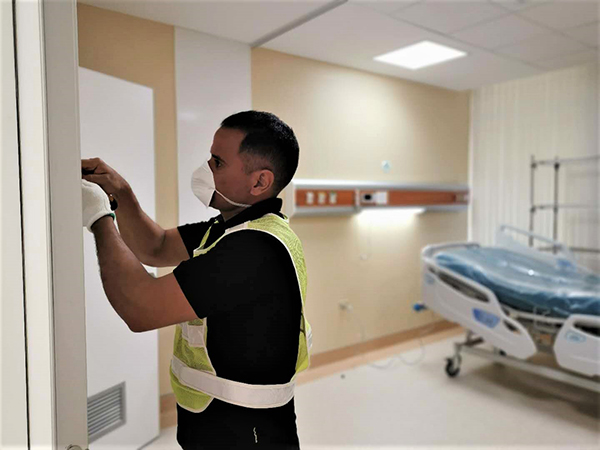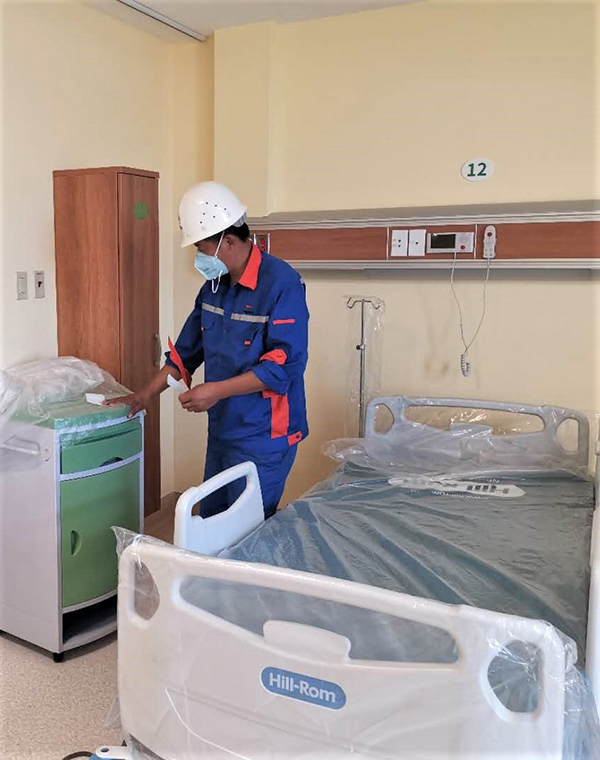 “在疫情期間實施搶工(gong)(gong),挑戰比以(yi)往更(geng)大。但為了特多人民的生命健康(kang)安全,我(wo)們(men)會像(xiang)國(guo)內搶建火神(shen)山(shan)醫院(yuan)一樣,擔(dan)起我(wo)們(men)的責(ze)任。”項(xiang)目(mu)負責(ze)人李東生表示,項(xiang)目(mu)部既要迅(xun)速響(xiang)應(ying)業主(zhu)需求,還要控(kong)制(zhi)施工(gong)(gong)人員密度,防止出現交(jiao)(jiao)叉感染。項(xiang)目(mu)部緊急召開會議,暫停其他區(qu)(qu)域(yu)施工(gong)(gong),協(xie)調多方(fang)資源(yuan),將其他區(qu)(qu)域(yu)床(chuang)(chuang)位設備轉移到指定(ding)區(qu)(qu)域(yu)。經過7天的緊張工(gong)(gong)作,當地時間3月(yue)24日(ri),所(suo)有病(bing)房(fang)床(chuang)(chuang)位和(he)設備已移交(jiao)(jiao)給(gei)業主(zhu)。