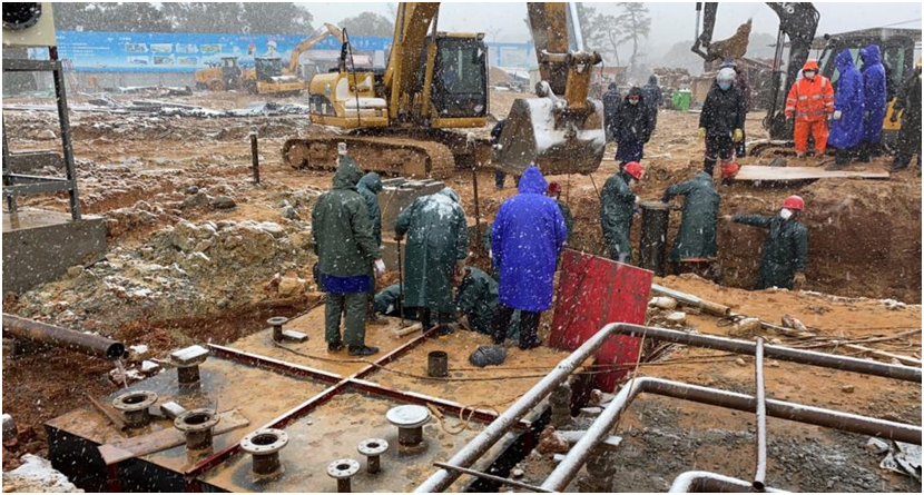 在馳援路上,中節能(neng)生(sheng)態成立臨時黨(dang)支部,切實做到(dao)業務推進到(dao)哪(na),黨(dang)的組織工作就跟(gen)進到(dao)哪(na)。在建(jian)設(she)過程中,中節能(neng)生(sheng)態排除萬難,克服惡劣(lie)天(tian)(tian)(tian)氣(qi)的影響,無畏(wei)虎(hu)視眈(dan)眈(dan)的病毒,10小時內(nei)完(wan)成建(jian)設(she)方案,3天(tian)(tian)(tian)內(nei)完(wan)成4大類工程設(she)計圖,8天(tian)(tian)(tian)內(nei)完(wan)成主設(she)備吊裝(zhuang)和管(guan)線敷設(she)。