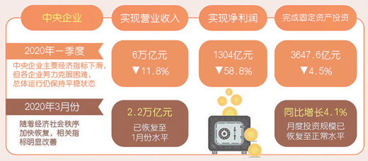 隨著生產(chan)生活秩序加快(kuai)恢復(fu),近期(qi)央(yang)企(qi)經(jing)濟運(yun)行已(yi)出(chu)現積極向好跡(ji)象:一(yi)季度,中(zhong)央(yang)企(qi)業(ye)(ye)(ye)原(yuan)(yuan)油、原(yuan)(yuan)煤產(chan)量(liang)(liang)保(bao)持正增(zeng)(zeng)(zeng)長,建筑(zhu)企(qi)業(ye)(ye)(ye)新(xin)簽合同(tong)額同(tong)比增(zeng)(zeng)(zeng)長3.7%,其中(zhong)境外同(tong)比增(zeng)(zeng)(zeng)長18%;3月份,火電企(qi)業(ye)(ye)(ye)發電量(liang)(liang)、水(shui)運(yun)企(qi)業(ye)(ye)(ye)貨物總周轉均(jun)已(yi)恢復(fu)至上年(nian)同(tong)期(qi)水(shui)平(ping)(ping);4月份以來,央(yang)企(qi)的成品油日均(jun)銷量(liang)(liang)、鋼材日均(jun)銷量(liang)(liang)均(jun)已(yi)經(jing)接近去(qu)年(nian)正常水(shui)平(ping)(ping),售電量(liang)(liang)比去(qu)年(nian)同(tong)期(qi)略有增(zeng)(zeng)(zeng)長。