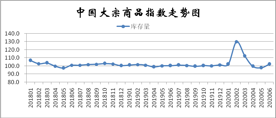 2020年(nian)6月(yue)份,大(da)宗商品(pin)庫存(cun)指數止跌反(fan)彈,至102.3%,較上月(yue)回(hui)升4.6個(ge)百分點,該指數在(zai)連續兩個(ge)月(yue)回(hui)落后,本月(yue)出(chu)現反(fan)彈,顯示商品(pin)庫存(cun)開(kai)始累積(ji),庫存(cun)壓(ya)力加(jia)大(da)。各主要商品(pin)中(zhong),鋼鐵、鐵礦(kuang)石、煤炭、成品(pin)油和(he)(he)有色金屬(shu)庫存(cun)量(liang)均出(chu)現止跌回(hui)升的態勢,化工和(he)(he)汽車庫存(cun)量(liang)則(ze)繼續上升,且增速和(he)(he)上月(yue)相比(bi)均有所(suo)加(jia)快(kuai)。