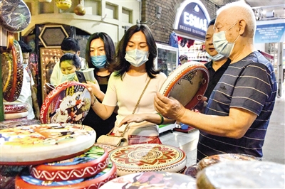 游客在烏魯木齊大巴扎景區購物