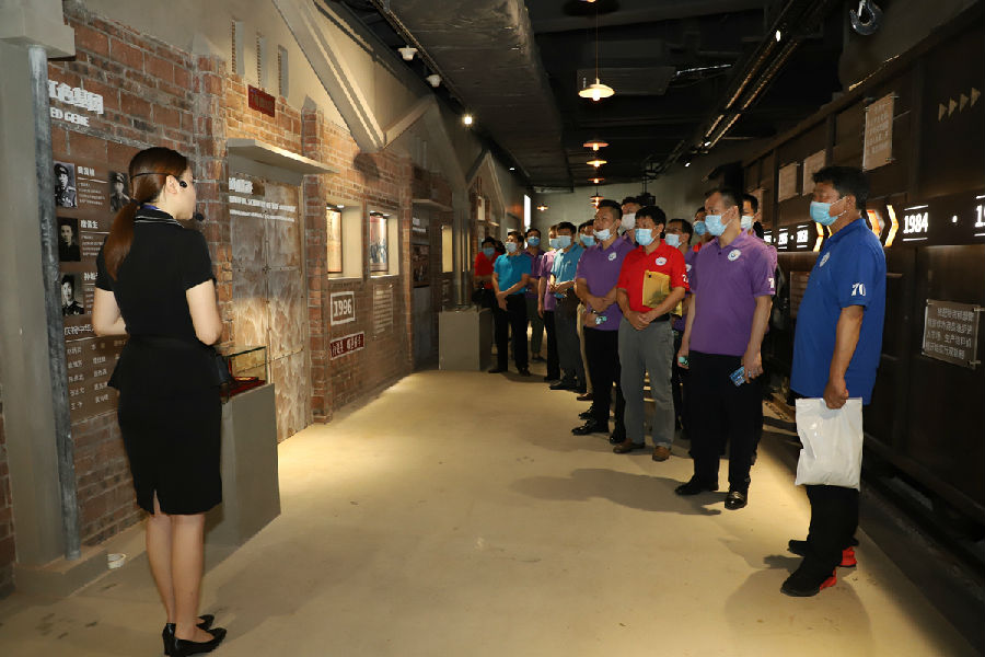 現代物流集團依托企業71年發展史,開展現場教學,激發奮進“十四五”的精氣神。圖為企業組織黨員干部參觀公司規劃館歷史區域部分。