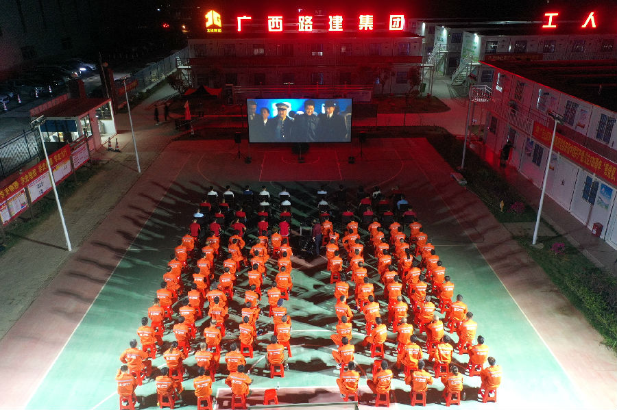 北投集團“百場紅色電影進工地活動”在欽北改擴建項目工人馨村啟動,工人馨村近150名產業工人共同觀看紅色經典影片《建黨偉業》。
