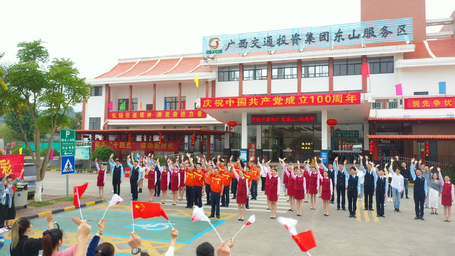 交投集團南寧運營公司在東山服務區組織紅歌快閃。
