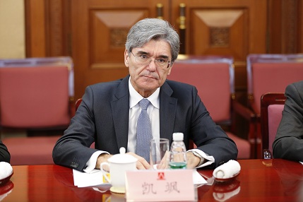 11月26日下午,國資委主任張(zhang)毅在委內會見了德國西門子(zi)股份(fen)公司(以下簡(jian)稱(cheng)西門子(zi))全(quan)球(qiu)總裁兼(jian)首席執(zhi)行(xing)官凱颯先(xian)生(sheng)一行(xing)。雙方主要就(jiu)工業4.0、創新與合(he)作等議題進(jin)行(xing)了深入交流。