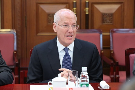 4月15日(ri),國務院國資委(wei)秘書長閻曉峰在(zai)委(wei)內會見(jian)了威達信集團(tuan)總(zong)裁兼首席執行官顧瑞澤一行。