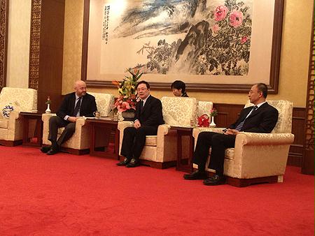 當晚,徐福順副主任受張毅書記委托,會見并宴請了世界可持續發展工商理事會主席皮特﹒貝克一行,雙方就推動中國國有企業可持續發展問題進行了交流。徐福順副主任向外方介紹了剛剛閉幕的黨的十八屆三中全會關于深化國有企業改革、建設生態文明等方面的新思路、新舉措、新任務和對國有企業更好履行社會責任的新要求。他衷心感謝世界可持續發展工商理事會長期以來為推動中國國有企業更好實現可持續發展所作的貢獻,希望雙方繼續加強交流合作,共同推動中國和世界的健康可持續發展。