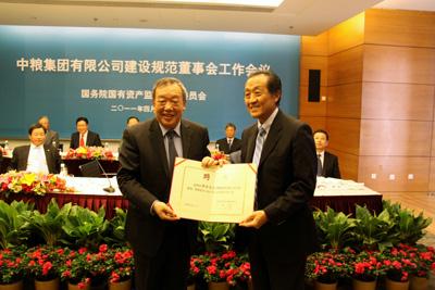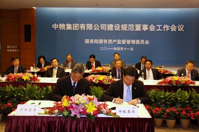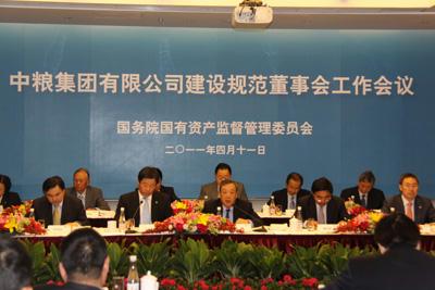 4月11日下(xia)午,國(guo)資(zi)委(wei)(wei)在京召開中(zhong)(zhong)糧(liang)(liang)集(ji)團有限公司(以下(xia)簡稱(cheng)中(zhong)(zhong)糧(liang)(liang)集(ji)團)建設規范董(dong)事會工作會議。國(guo)資(zi)委(wei)(wei)副(fu)主(zhu)任邵(shao)寧(ning)出席(xi)會議并講(jiang)話,監事會主(zhu)席(xi)董(dong)樹(shu)奎、中(zhong)(zhong)組部(bu)(bu)干(gan)部(bu)(bu)五局(ju)(ju)和國(guo)資(zi)委(wei)(wei)改組局(ju)(ju)、企干(gan)一局(ju)(ju)負責(ze)同志出席(xi)了會議。邵(shao)寧(ning)代表國(guo)務院國(guo)資(zi)委(wei)(wei)向(xiang)中(zhong)(zhong)糧(liang)(liang)集(ji)團的外部(bu)(bu)董(dong)事頒發了聘(pin)書。中(zhong)(zhong)糧(liang)(liang)集(ji)團與外部(bu)(bu)董(dong)事簽訂了服務合約。