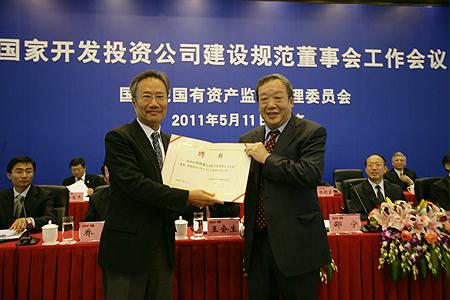 5月11日(ri)上午,國(guo)(guo)資委(wei)在京召開國(guo)(guo)家開發(fa)投資公司(以(yi)下簡稱國(guo)(guo)投)建設(she)規范(fan)董事會工作(zuo)會議(yi)。國(guo)(guo)資委(wei)副主任邵(shao)寧出席(xi)會議(yi)并(bing)作(zuo)重要講話,監事會主席(xi)呂黃生(sheng)、中組部(bu)(bu)干(gan)部(bu)(bu)五局和(he)國(guo)(guo)資委(wei)改組局、企干(gan)一局負責同(tong)志出席(xi)了(le)會議(yi)。邵(shao)寧代表國(guo)(guo)務院國(guo)(guo)資委(wei)向國(guo)(guo)投外部(bu)(bu)董事頒發(fa)了(le)聘書。國(guo)(guo)投與外部(bu)(bu)董事簽訂了(le)服務合約。