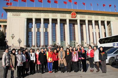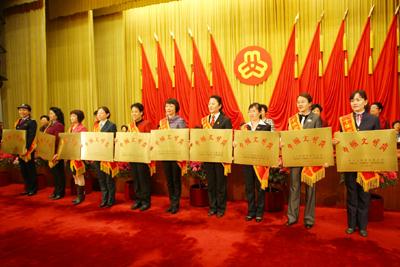 3月7日上午,中央企業獲得全國三八紅旗手(集體)、巾幗建功先進個人(集體)稱號21名先進個人、集體代表在人民大會堂參加全國“創先爭優巾幗建功全國三八紅旗手(集體)表彰大會”,其中,中國鐵路工程總公司劉建媛、國家電網江蘇省電力公司南京供電公司客戶服務中心營業一班(劉平營業廳)分別作為“全國三八紅旗手”、“全國巾幗文明崗”的代表上臺領獎。會議開始前,參會的中央企業三八紅旗手(集體)的代表還受到中共中央政治局委員、全國人大常委會副委員長王兆國,中共中央政治局委員、國務委員、國務院婦女兒童工作委員會主任劉延東等領導的接見并合影留念。