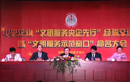 向獲得“文明服務示范窗口(kou)”稱(cheng)號的中央企業授牌