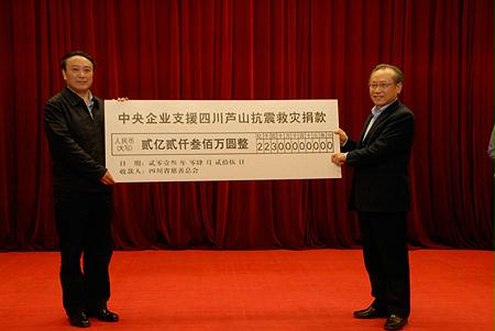 在中央企業及所屬200多家單位在四川蘆山災區一線全力抗震救災、恢復重建之際,27戶中央企業又向災區捐款2.27億元,加上此前16戶中央企業及其下屬企業通過不同途徑向災區捐款8673.2萬元,累計捐款已經超過3億元。