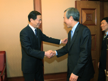 4月29日,國務院國資委主任李榮融會見了韓國浦項制鐵公司(POSCO)會長李龜澤一行。雙方就美國次貸危機對全球經濟,特別是對中國經濟的影響、中央企業應對當前的經濟形勢、中央企業搞好主營業務等問題交換了意見。李榮融高度評價浦項制鐵公司作為世界知名企業40年來走過的歷程,指出其堅持突出主業,不斷進取的做法值得我們中央企業學習和借鑒。