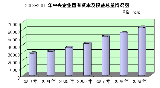 一、國有資產保值增值情況。2009年末,129家中央企業擁有國有資本及權益為62930.9億元,比2009年初增加6987.4億元,增幅為12.5%;比2003年增加3.4萬億元,年均遞增13.7%。在本年國有資本及權益凈增加額中,因國家追加投資、資本溢價、無償劃入等客觀因素增加3508.8億元,因無償劃出、自然災害損失、上繳國有資本經營收益等客觀因素減少1743.9億元。扣除各項客觀增減因素后,2009年中央企業平均國有資產保值增值率為109.3%。在全部中央企業中,2009年實現國有資產保值增值的企業有119家,占92.2%;國有資產保值增值率超過110%的企業有67家,占51.9%。