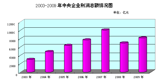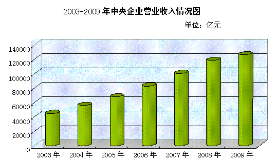 二、經營規模情況。截至2009年底,中央企業資產總額210580.8億元,比上年增長19.5%;凈資產總額83968.9億元,比上年增長14.6%。2009年中央企業實現營業總收入126271.6億元,比上年增長6.4%。在全部中央企業中,2009年底資產總額超過千億元的企業有53家,比上年增加8家;2009年實現營業總收入超過千億元的企業有38家,比上年增加5家。在美國《財富》雜志2010年公布的世界500強企業中,上榜的中央企業有30家,比上年增加6家,比2003年增加24家。