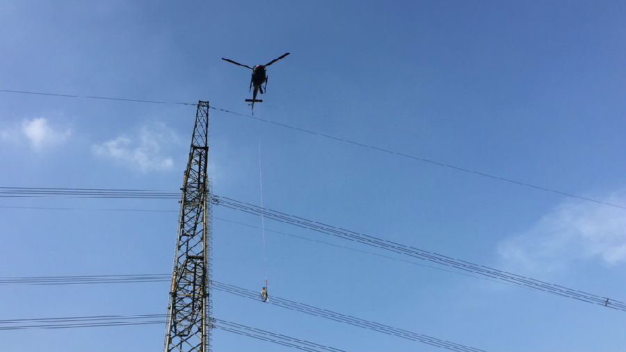 相比人工爬塔、走線、運輸,實施直升機帶電作業可以快速、成批量地發現線路缺陷,發現后根據需要就近消除缺陷,節約大量時間,大幅提升效率。湯子隆 胡家玥 攝