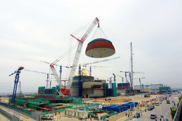 2017年5月25日17時58分,中國核建承建的“華龍一號”全球首堆示范工程福清核電5號機組順利實現穹頂吊裝。