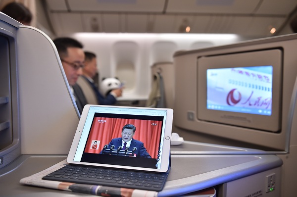 10月18日,東航通過空中互聯平臺,與人民網攜手推出“空中看十九大”服務