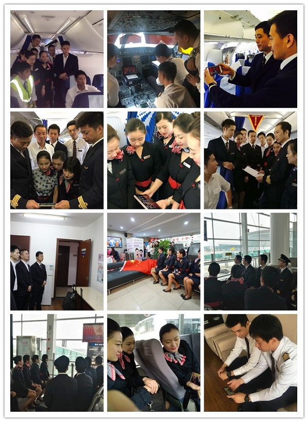 在東航(hang)全(quan)國各地機場的航(hang)班(ban)保障(zhang)現場,當天執行航(hang)班(ban)的機組(zu)(zu)(zu)、乘務(wu)組(zu)(zu)(zu)、空保組(zu)(zu)(zu)等空勤人員(yuan),充分(fen)利(li)用航(hang)前準備(bei)、等候進場和(he)航(hang)班(ban)保障(zhang)銜接間隙,自(zi)發在準備(bei)室、休息廳(ting)、機組(zu)(zu)(zu)車(che)、機場大廳(ting)和(he)飛機上,通過(guo)視頻、網絡等渠道集中收看十九大會議直播。