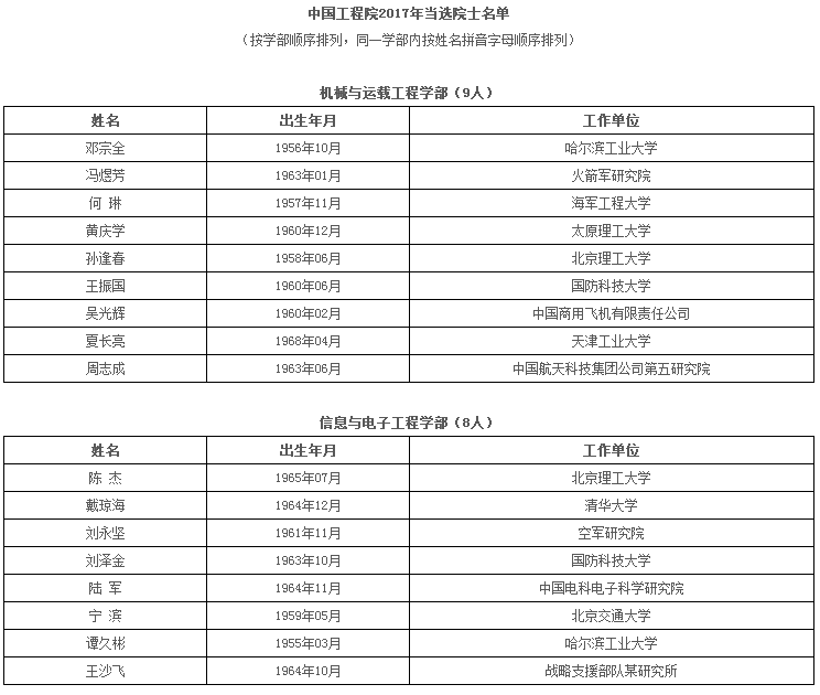11月27日,中(zhong)(zhong)國工程院公(gong)布了新(xin)當選的(de)67名院士名單。新(xin)當選的(de)67名院士中(zhong)(zhong),男性63人,占(zhan)94%;女性4人,占(zhan)6%。最小年齡(ling)49歲(sui),最大年齡(ling)67歲(sui),平均(jun)年齡(ling)56.37歲(sui)。60歲(sui)(含)以下的(de)57人,占(zhan)85%;61歲(sui)至(zhi)70歲(sui)(含)的(de)10人,占(zhan)15%,更多優秀的(de)中(zhong)(zhong)青(qing)年工程科技專家當選。