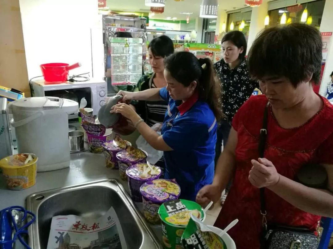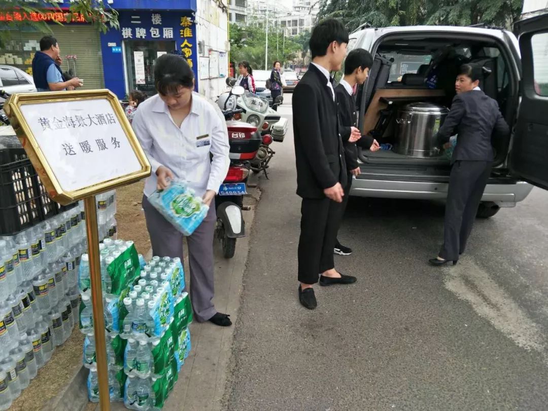 中國石化海南石油組織獻愛心隊伍,給滯留旅客送去熱騰騰的飯食