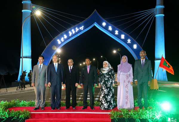 2014年9月,中(zhong)國國家主席習近平訪問期間,和(he)(he)馬爾代(dai)夫總統(tong)亞明共同商(shang)定,由(you)中(zhong)國援(yuan)建(jian)一座連接首都馬累和(he)(he)機(ji)場島之間的(de)跨海大橋(qiao)——中(zhong)馬友誼(yi)大橋(qiao)。項目(mu)由(you)商(shang)務部經(jing)濟合作(zuo)局組(zu)織實施(shi)、中(zhong)國交建(jian)負責大橋(qiao)的(de)管理和(he)(he)施(shi)工。