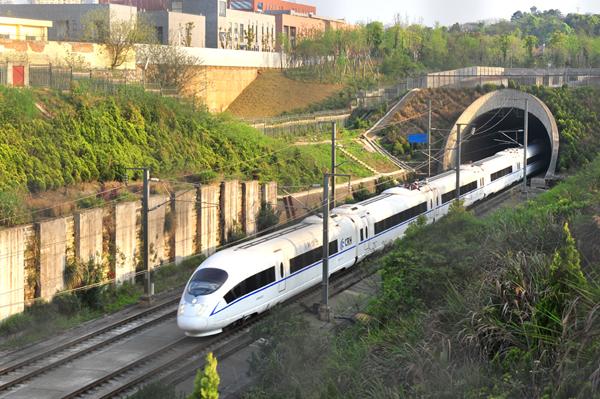 運行中京港高(gao)鐵穿過瀏(liu)陽河隧道