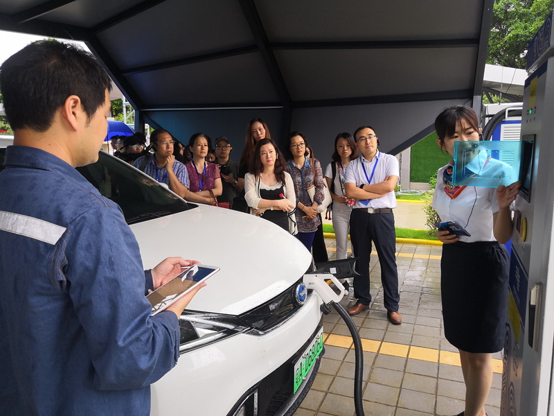 參(can)觀者到粵港(gang)澳(ao)大灣(wan)區電力(li)營商環境體(ti)驗中心參(can)觀,圖為(wei)了解南方(fang)電網的充電服務
