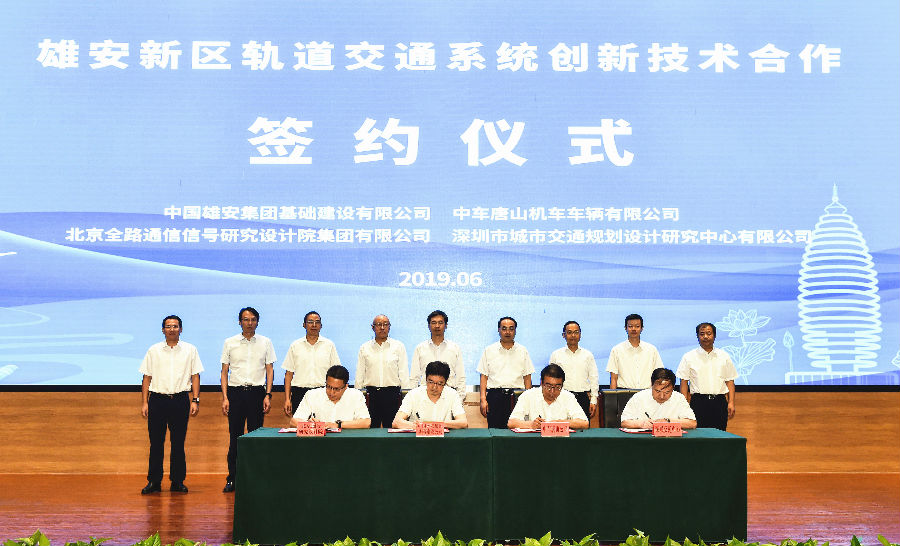 6月24日,中(zhong)國通號旗(qi)下研究(jiu)設(she)(she)計院(yuan)集團與(yu)中(zhong)國雄(xiong)安(an)集團基礎建設(she)(she)有(you)(you)限公司、中(zhong)車唐山機車車輛有(you)(you)限公司、深(shen)圳(zhen)市(shi)城市(shi)交通規劃設(she)(she)計研究(jiu)中(zhong)心有(you)(you)限公司簽署《雄(xiong)安(an)新區軌道交通系統(tong)創新技術(shu)合作協議》,共(gong)同(tong)推進雄(xiong)安(an)新區軌道交通系統(tong)創新技術(shu)合作,打造雄(xiong)安(an)智慧(hui)交通,助力京津冀協同(tong)發展。