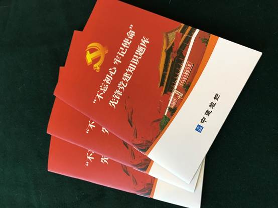 人手一本先鋒黨建題庫口袋書、深刻體會“不(bu)忘初心(xin)、牢記使命”的內涵、記住共產黨的歷史上的重要事件,這是近一個月中建裝飾員工的休閑新常態。自6月初開展主題教育以來,該集團黨委組織編印了“不忘初(chu)心、牢(lao)記(ji)使命(ming)”先鋒黨(dang)(dang)建知識(shi)題(ti)庫(ku),希望所有的(de)黨(dang)(dang)員干(gan)部通過深入學習,將意(yi)識(shi)上的(de)先進性轉化成(cheng)為行動上的(de)模范性,人人敢(gan)當先鋒,人人勇站C位(wei),學以致用(yong),用(yong)有所成(cheng),把學習成(cheng)效體(ti)現到增強黨(dang)(dang)性、提(ti)高能力、改(gai)進作風、推(tui)動工(gong)作上來。