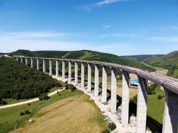 8月20日上午11時16分(fen),伴隨著最(zui)后一榀(pin)40米(mi)箱梁精(jing)準對位(wei)于三(岔)阿(爾山)公路查(cha)干郭(guo)勒河特大橋25號墩與26號橋臺上,由(you)中國鐵建所屬中鐵十(shi)九局(ju)承建的內蒙古自(zi)治區在(zai)建最(zui)高公路特大橋完成架設。