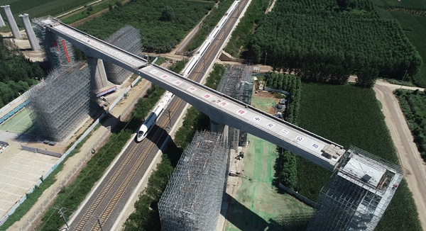 8月27日,中(zhong)交集團參建的京雄城際鐵(tie)路跨津保鐵(tie)路連續梁轉體完成(cheng)。