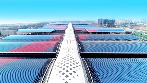 160萬平方米的(de)總(zong)建筑(zhu)面(mian)(mian)積,寓(yu)意(yi)“海上絲綢之路”的(de)彩色絲帶花紋屋面(mian)(mian),似遠(yuan)處海面(mian)(mian)洶涌的(de)波濤(tao)和翻騰(teng)的(de)浪花,滾(gun)滾(gun)向前。這座全球最(zui)大展館將于11月4日至(zhi)6日迎來(lai)首展運(yun)營。