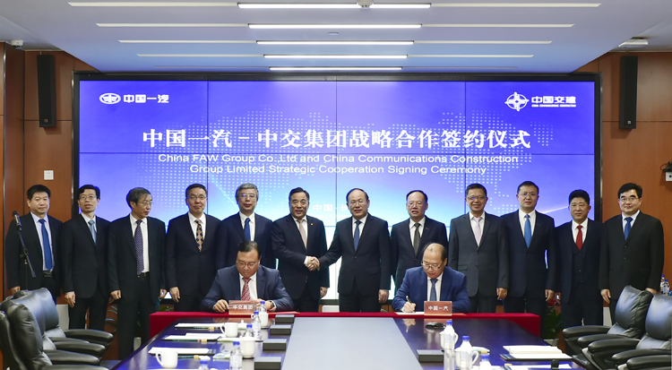 10月10日(ri),中(zhong)(zhong)國(guo)一汽與(yu)中(zhong)(zhong)國(guo)交通建設集(ji)團有(you)限公司(以下簡稱(cheng)中(zhong)(zhong)交集(ji)團)簽訂戰略合作協議。