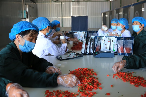 合作社社員分揀包裝枸杞鮮果