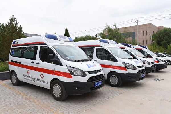 中國航油給鹽池縣馮記溝鄉衛生院捐贈的救護車