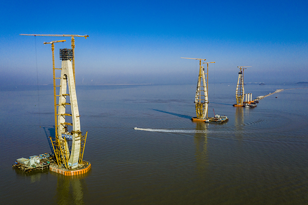 近日(ri),中交集團承建的滬(hu)舟(zhou)甬跨海通(tong)道舟(zhou)岱跨海大橋主通(tong)航(hang)孔(kong)橋主塔封(feng)頂。