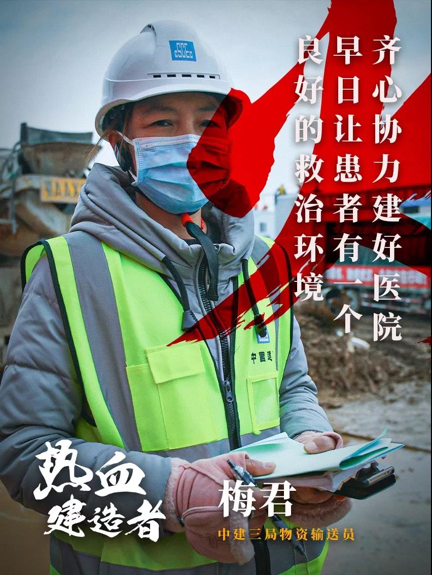 梅(mei)君,44歲,山東(dong)東(dong)營人(ren),中建(jian)三局負責現場物資輸送。她(ta)說,齊心協力(li)建(jian)好(hao)醫院(yuan)早日讓患者有(you)一個良好(hao)的救(jiu)治環境。